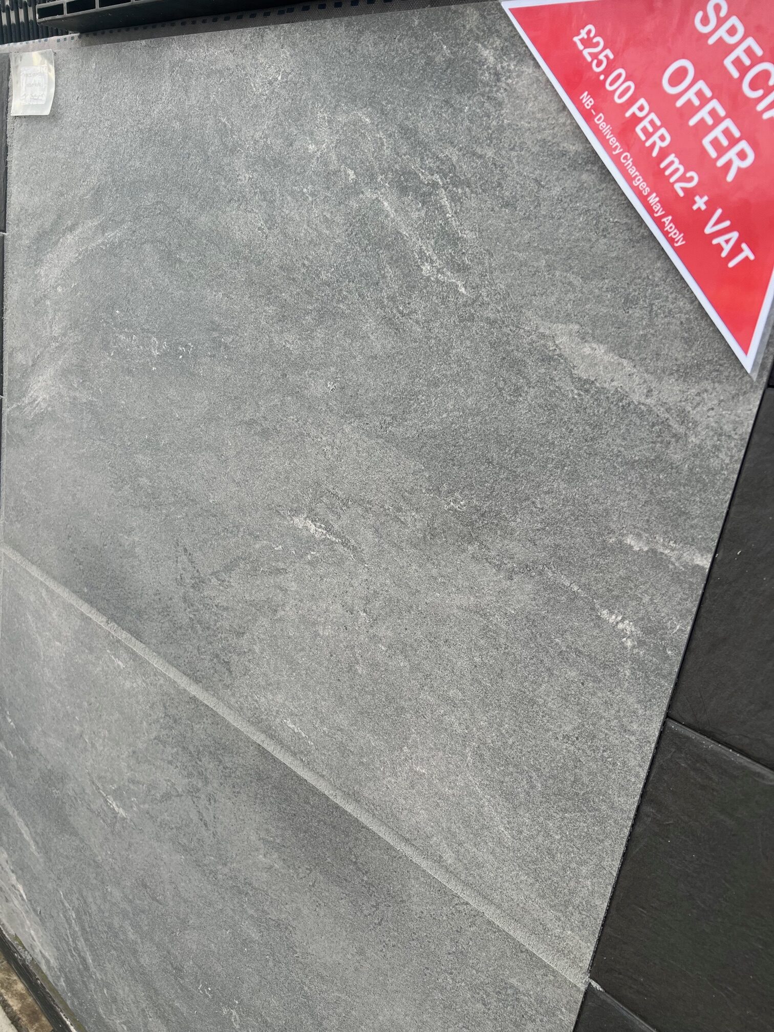 OCEAN WAVE porcelain paving from INDIA – is a mid bluey grey shade with a lighter grey veining – very nice!